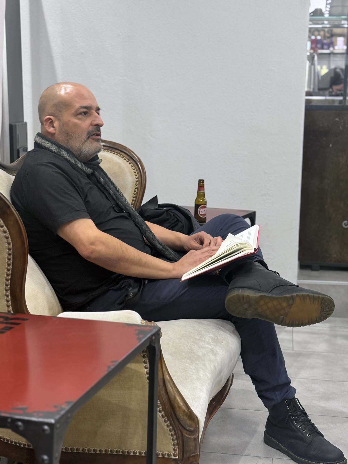 Quicklebendig war denn auch kürzlich seine Lesung im Rahmen von «Zürich liest» im gut gefüllten Coiffeursalon MAD Lux am Goldbrunnenplatz. Inhaber Marc Menden, auch er kein Unbekannter im Nachtleben der letzten 20 Jahre (u.a. «Tonhalle Late»), führte durch den Abend. Es wurde immer wieder gelacht und geneckt – man kennt sich. Neu ist, dass nun auch neben den Verpflegungsangeboten am Goldbrunnenplatz Kultur stattfindet.